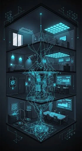 Integración de sistemas inteligentes para hogares y oficinas, control remoto de iluminación, climatización y seguridad.